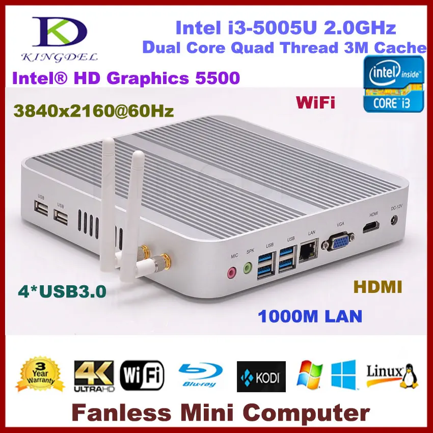 Main Features : 2016 Fanless mini desktop computer intel Core i3 5005U dual core,Intel HD Graphics 5500,USB 3.0 HDMI,VGA,Linux pc,Windows 10