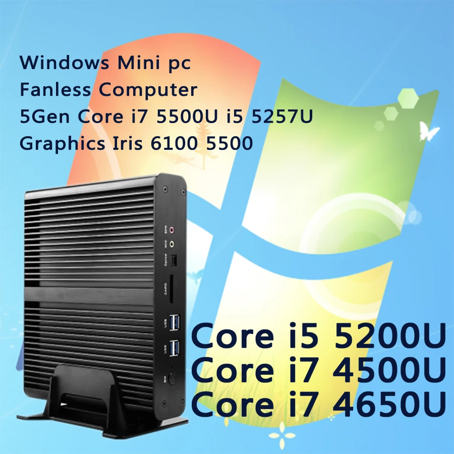 Main Features : Windows Mini pc i7 Barebone HTPC Intel Nuc Fanless Computer Broadwell Graphics Iris 6100 5500 Wifi 5Gen Core i7 5500U i5 5257U