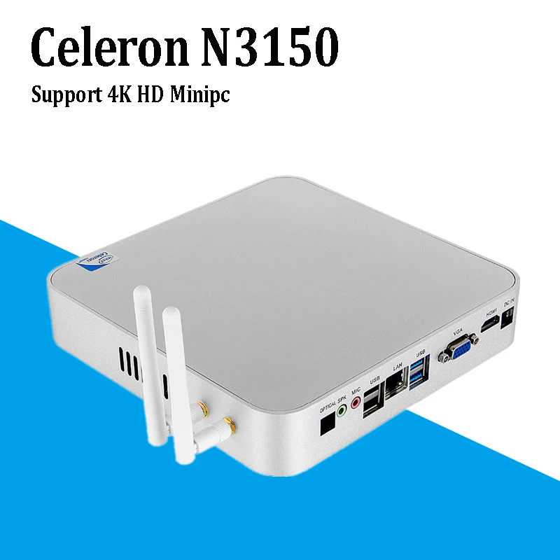 Main Features : Intel Celeron N3150 Mini PC Linux HTPC OpenELEC Support 4K HD Minipc Fanless Micro Computer HTPC Mini PC Com Windows
