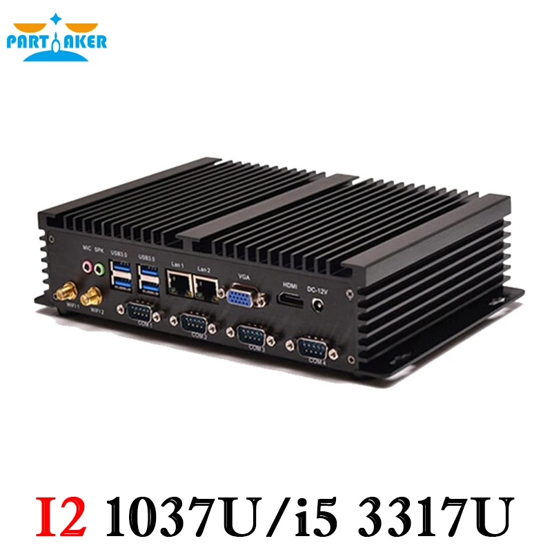 Main Features : Partaker I2 Industrial Fanless Mini PC with 4 COM Dual Lan Black Celeron 1037u I5 3317u Processor