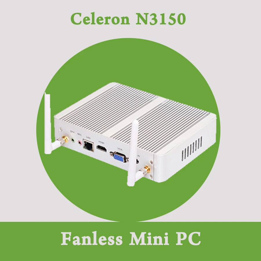 Main Features : Celeron N3150 Mini Fanless Nuc PC 6W TDP VGA HDMI WIFI BT Slim PC Palm Computer Desktop for School In stock! 16*12*3.7CM