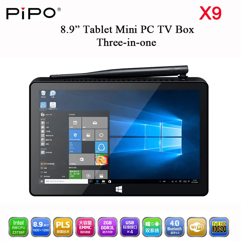 Main Features : Mini PC PIPO X9 TV Box Windows 10 Android 4.4 Dual OS 2GB RAM 32GB/ 64GB SSD Intel Atom Z3736F Quad Core HDMI USB WiFi Bluetooth